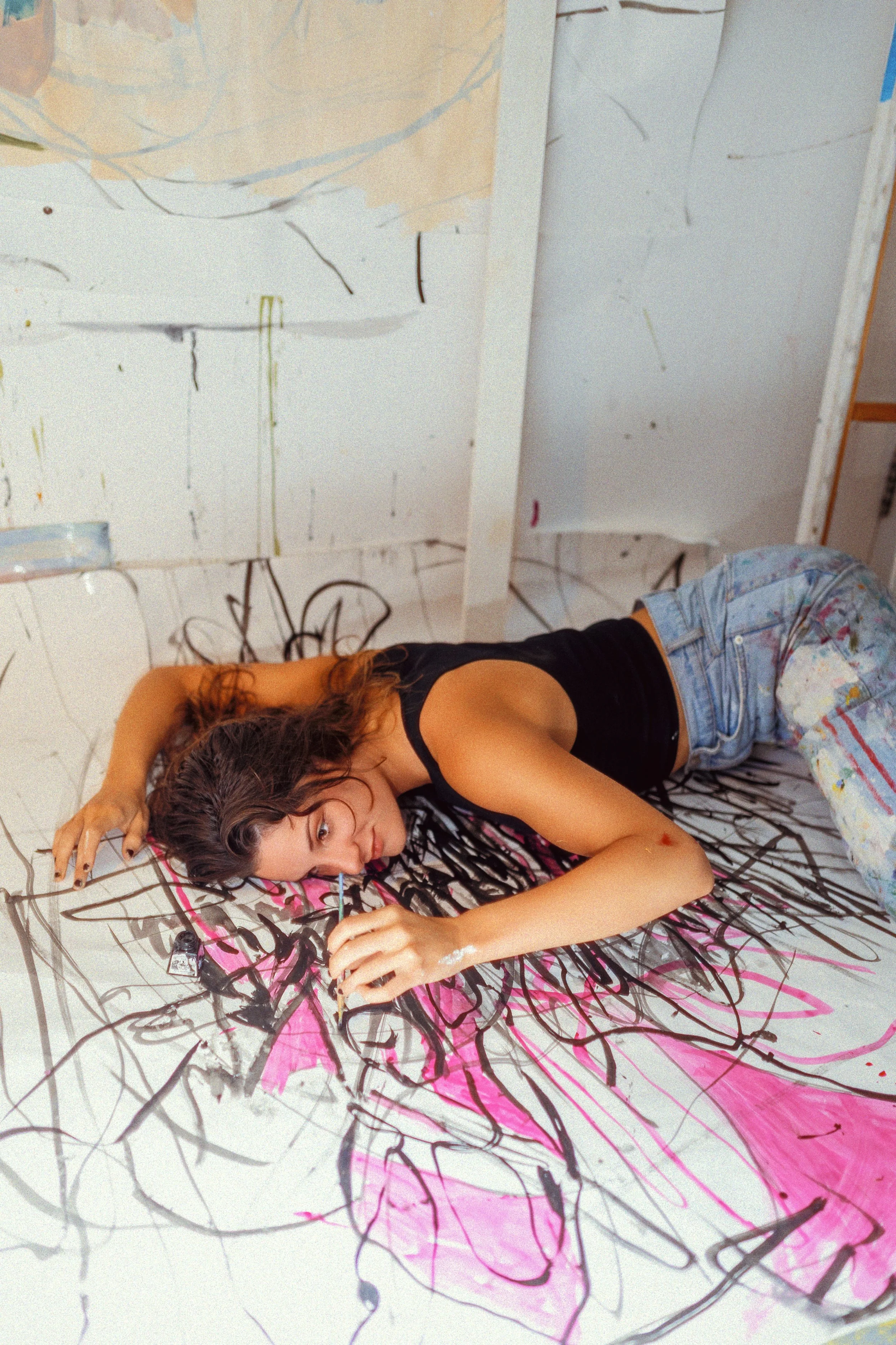 Recent highlights include exhibiting at Turner Contemporary, the acquisition of four works by The Artist Residence for their permanent collection, and commissions from Faithless and Pikes Hotel in Ibiza. In 2024, she participated in Brighton’s Open House Festival and exhibited in London in a show curated by renowned art critic and writer Anthony Fawcett. Following her 2023 graduation, she was nominated for the CVAN South East Platform Graduate Award and received the University for the Creative Arts Graduate Award, which culminated in a month-long residency and her debut solo show.
