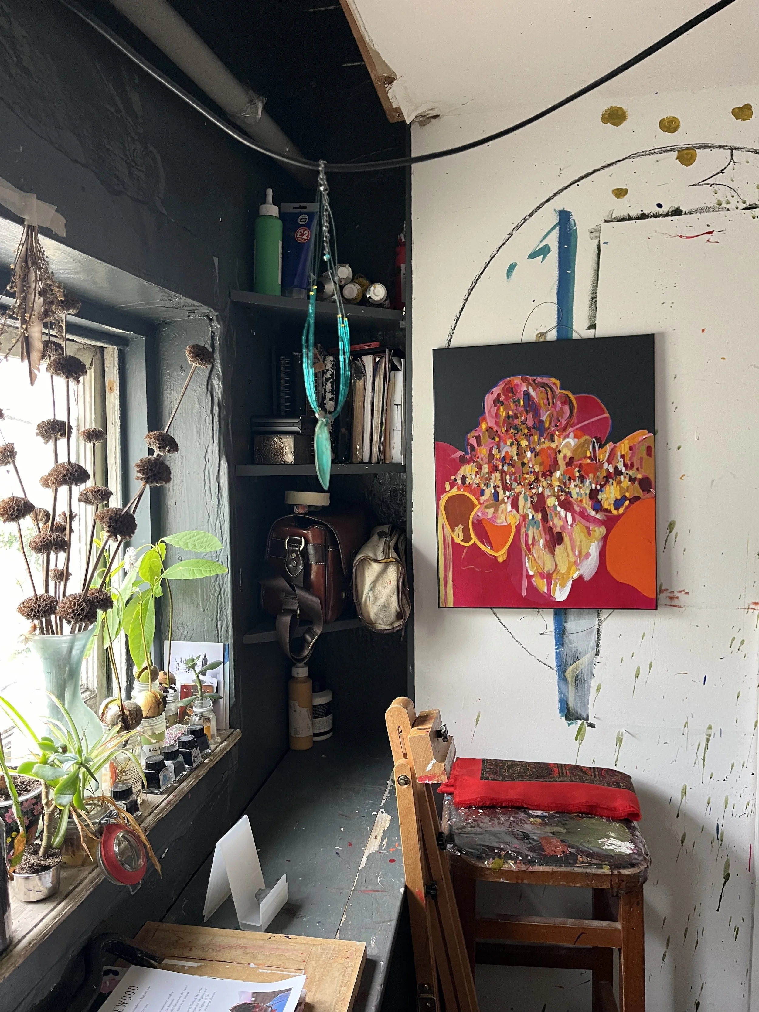 Antonia Hazlewood is a Brighton-based abstract impressionist whose work explores the space between painting and drawing. Her expressive, layered pieces challenge boundaries between the natural and the constructed, the living and the static, the tangible and the digital, the framed and the free — inviting viewers into a world where colour, line, and form pulse with life.